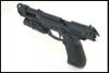 箱、説明書欠品。コンペンセイター、SUREFIRE X300タイプ ウェポンライト レプリカ(点灯確認済み。電池:CR123Ax2は付属しません。スイッチレバーの片側が破損しており脱落します)装着。本体は通常の使用感で擦り傷等ございます。マガジンからガス漏れの音がします。スライドを引いた後手を放してもスライドが前まで戻らず、かなり強く手で前へ押し戻さないと発射できない状態です。そのためブローバック~連射できない状態です。発射できた際の弾速は0.2gBB弾:0.617J~78.56m/s程度でした。ジャンク品となり現状品でのお渡しとなりますので、内容や状態をよくご確認の上ご検討ください。