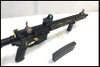 東京マルイ製マイクロプロサイト・メーカー不明KACタイプアイアンサイト・メーカー不明BCMタイプGunFighterグリップが取り付けられています。