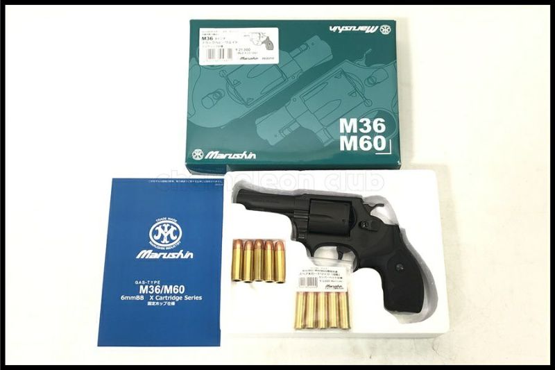 - マルシン S&W M36 3インチ ブラックHW ガスリボルバー プラグリップ仕様 予備カートリッジ付属