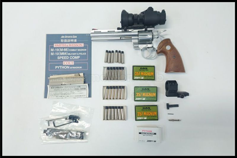 - コクサイコルトパイソン357 6インチ シルバー ガスリボルバー 付属品多数 現状品