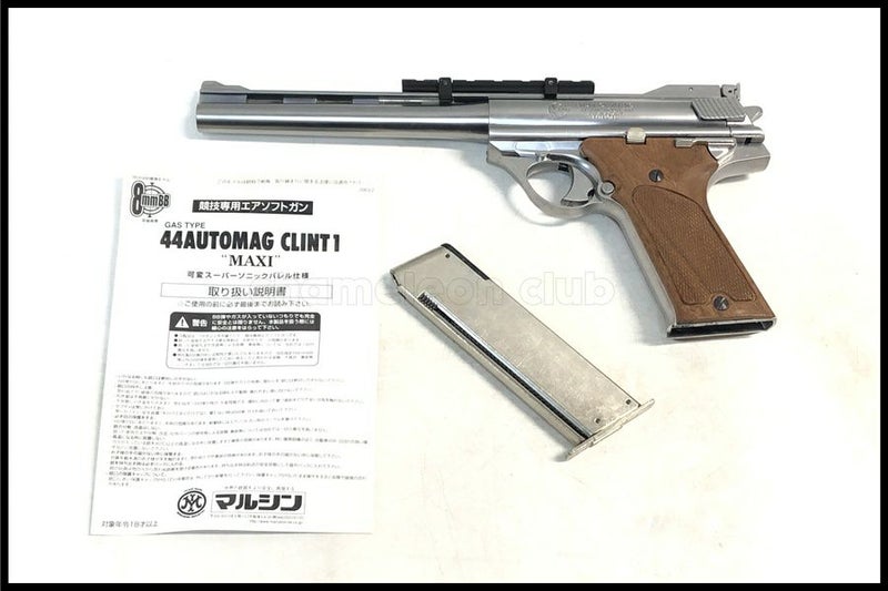 - マルシン44オートマグ クリント1 8mmBB マキシ シルバーABS 固定スライドガスガン 木製グリップ