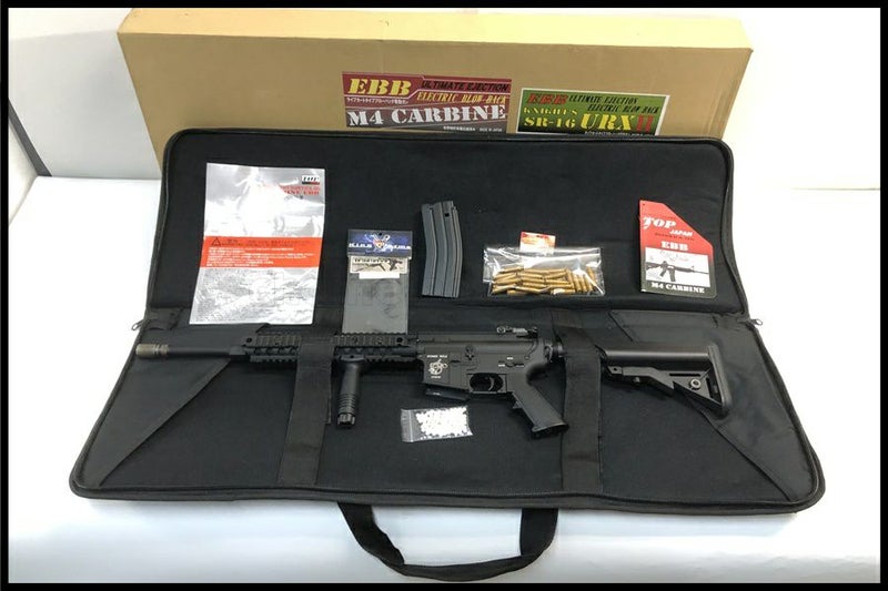 - 中古:E(ジャンク/要メンテナンス、オーバーホール推奨。現状お渡し品)箱(痛み/一部破損)、説明書(折れ)、ガンバッグ付き。ハンドガード交換(約10.5インチ)、グリップ付。外観に目立った傷などは見られませんが、通電が確認できませんでした。ヒューズ交換しても反応なし。内部の不具合、故障の可能性がありますので、ジャンク、要メンテナンス品とお考えください。エアコキ動作にて発射動作確認しています(0.2gBBにて計測 約0.68J 82.6m/s)。カートリッジの排莢動作も確認できました。中古、現状品となりますので、画像にて内容、状態をご確認の上ご検討ください。