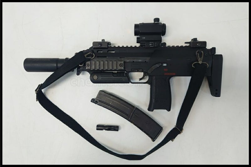 メーカー不明のドットサイト・東京マルイ製のショートサイレンサー・スリングが付属します。