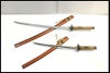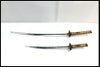 - 中古:C(使用感あり/キズ、ヨゴレあり)使用感と経年によるダメージ キズ等が多く見られます。大刀が全長104cm ブレード長73cm 重量1010g程度(鞘を払って) 小刀が全長71cm ブレード長48cm 重量670g程度(鞘を払って)です。台座が付属します。現状品となりますのでよくご確認ください。