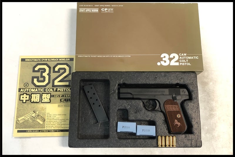 「付属品」・・・ 外箱・説明書・カートリッジ合計25発(20発はCAW製Colt .32 AUTO P210共用 )付属、写真に写っているものが全てです。