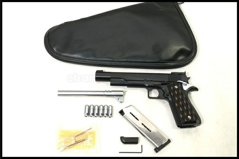 - 中古:B(使用感少な目/小キズ、ヨゴレ少々)MCW製のカスタムモデルで元バレルやバンパー 専用のケースなどが付属しています。未発火ですが多少の経年ダメージはあります。内部は比較的キレイです。スライド動作トリガー動作排莢確認できました。付属品は写真のものが全てです。現状品となりますのでよくご確認ください。