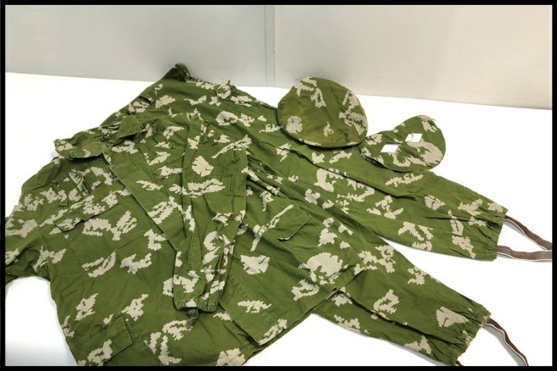 - ソ連軍KLMK ベリョースカ迷彩 2ピース上下 ベレーカバー マスク一式 実物